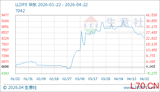 04月22日LLDPE价格8266.67元/吨 60天上涨22.02%