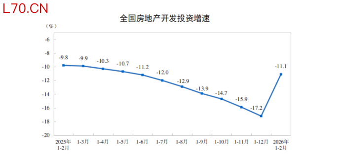 国家统计局:1—2月份,全国房地产开发投资9612亿元,同比下降11.1%