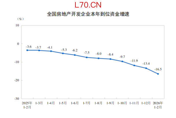 国家统计局:1—2月份,房地产开发企业到位资金同比下降16.5%