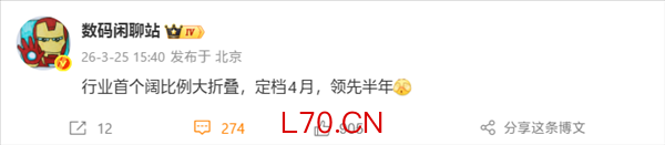 快科技3月25日消息,博主数码闲聊站今天发文称,行业首个阔比例大折叠定档4月。