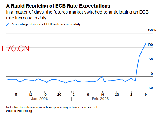 这种情况让欧洲央行决策者不得不在控制通胀预期与经济疲弱现状间寻求平衡。如今市场已开始押注央行将加息——几天前还在小幅预期降息,如今却转向年中收紧政策。Ashworth认为,若任由这种预期发酵,央行很可能会偏离正轨。